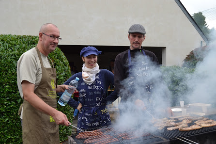 Pendant ce temps, Benoît, Jérôme et Edwige s’affairaient eux au barbecue. La marche ça creuse ! Sandwiches grillades, merguez ou saucisses ; taboulé et Chips et pour finir de bons gâteaux maisons accompagnés d’un café. Les marcheurs restés pour le repas ne l’ont pas regretté.